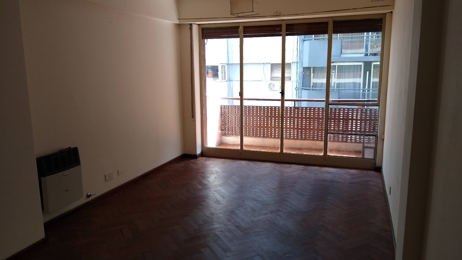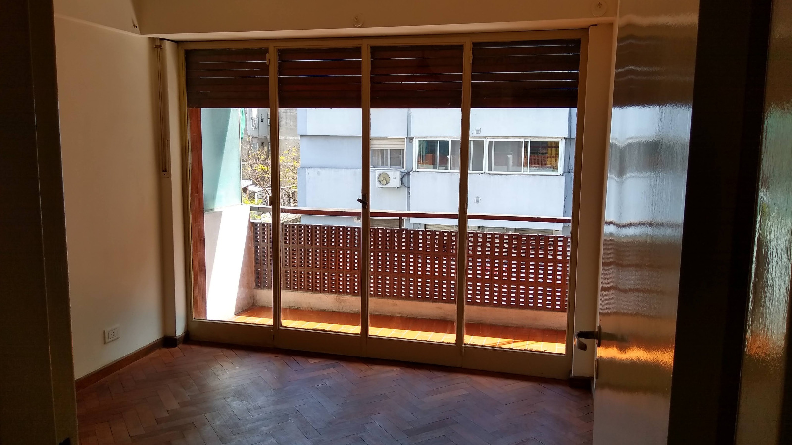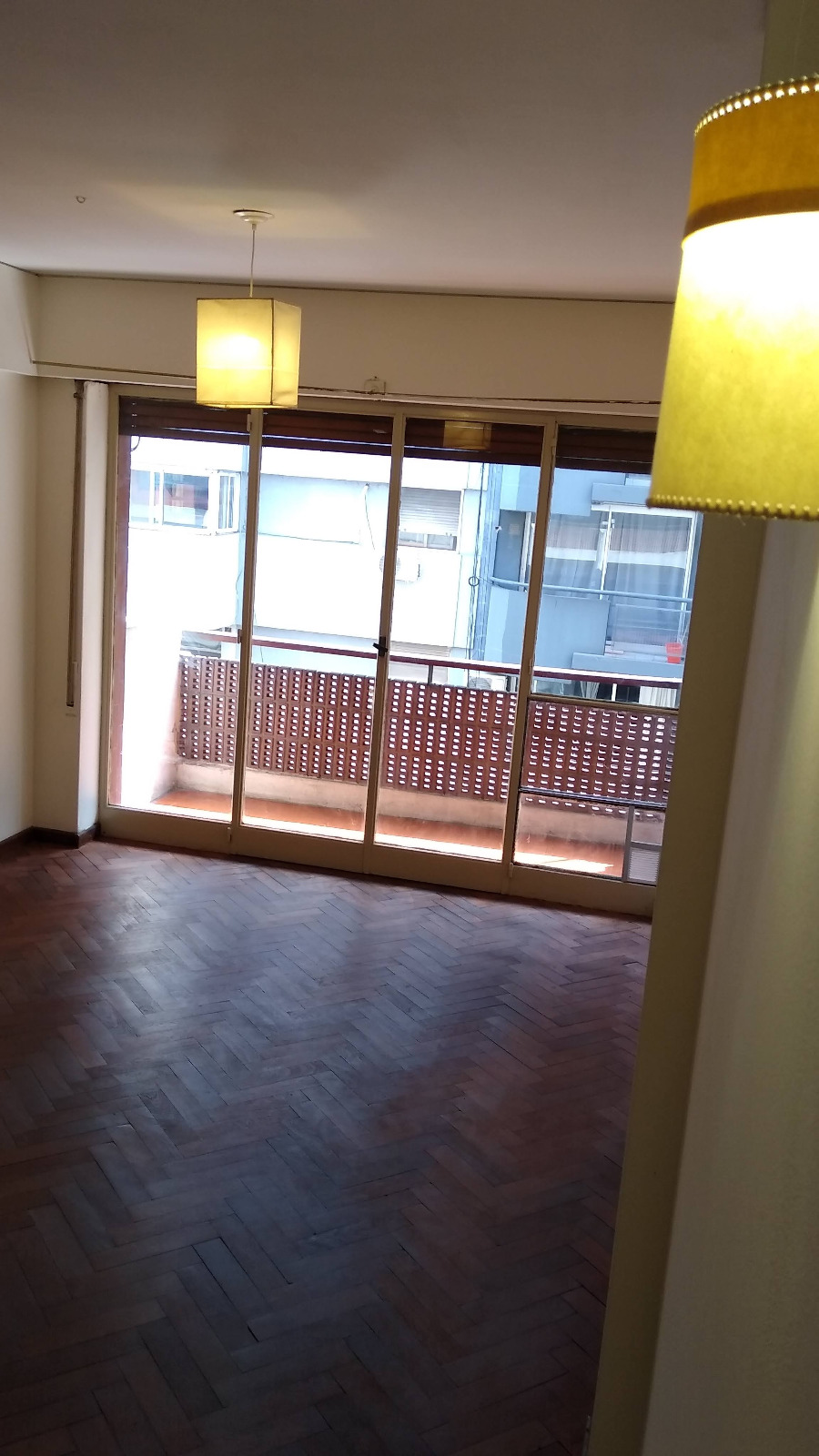 Departamento de 2 dormitorios y 2 baños al frente con balcón corrido por Corrientes en edificio de 40 años....